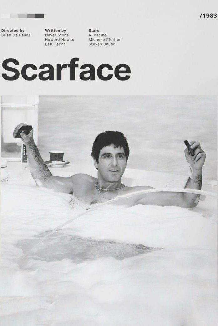 After getting a green card in exchange for assassinating a Cuban government official, Tony Montana stakes a claim on the drug trade in Miami. Viciously murdering anyone who stands in his way, Tony eventually becomes the biggest drug lord in the state, controlling nearly all the cocaine that comes through Miami. But increased pressure from the police, wars with Colombian drug cartels and his own drug-fueled paranoia serve to fuel the flames of his eventual downfall.