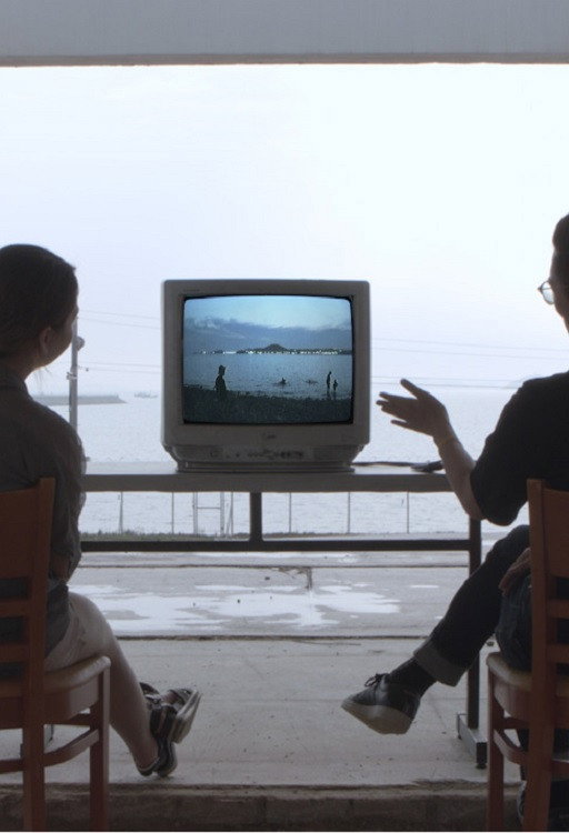 A man and a woman are watching television on the beach. The television shows a film taken a year ago on the beach, which is adapted from the man's novel. Frame In Frame foregrounds the concept of intellectual play related to the cinema.
