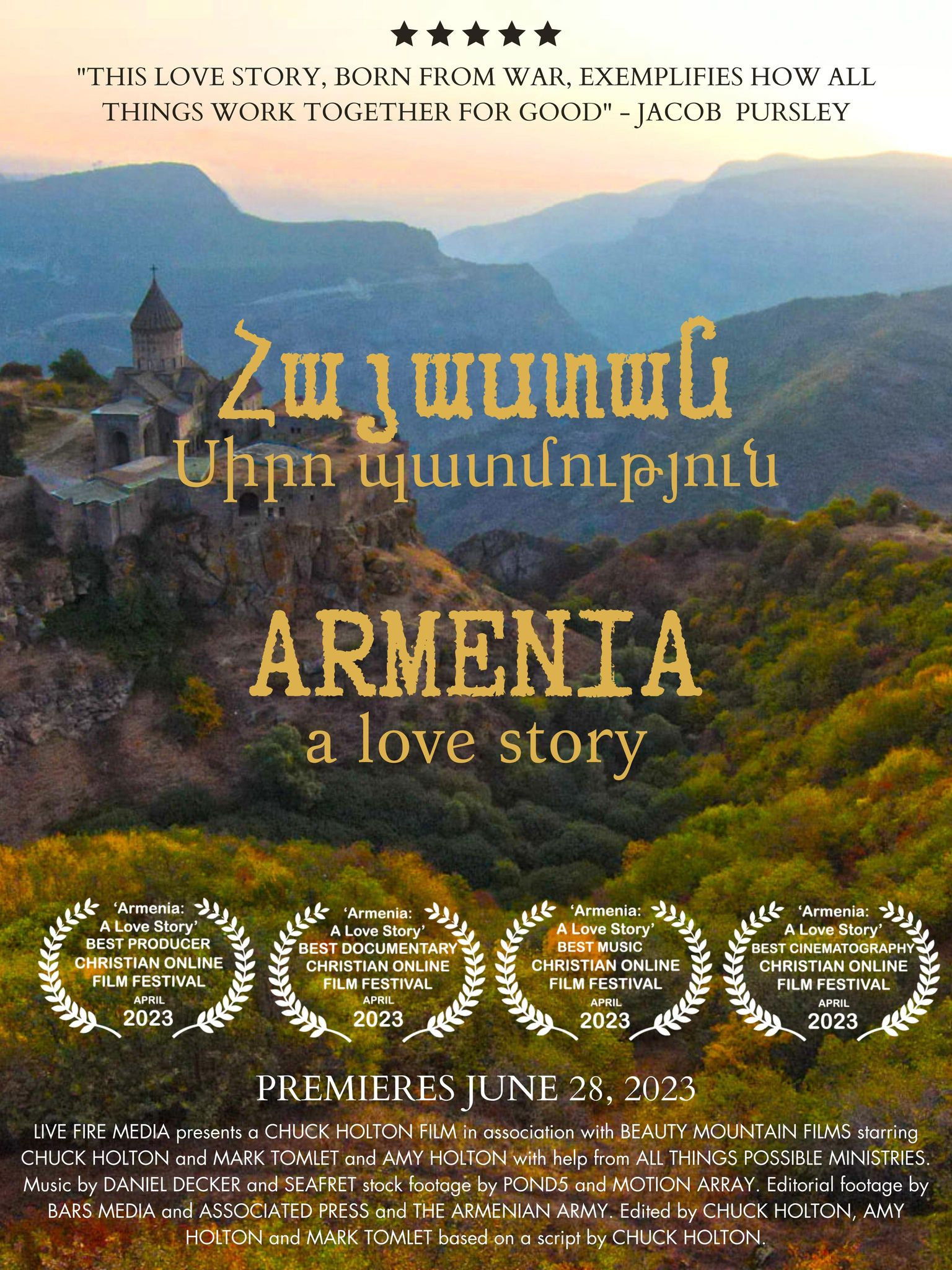 Two American teenagers become intrigued by Armenia's history and culture after learning about the 2020 aggression by Azerbaijan that devastated the Armenian-populated Nagorno-Karabach district from a friend's war correspondent father. Mark Tomlet and his friend Amy Holton embark on a life-changing journey to Armenia, visiting the war zone only months after an uneasy ceasefire was declared, and interview people affected by the war. In the process, the two learn a lot about themselves and how much they take for granted. That first trip leads to more engagement with Armenia, leading tours to the country, and eventually, something amazing happens that brings joy out of the tragedy of war. It's a serendipitous story of hope from tragedy, a chance adventure, and love blossoming even in the worst of circumstances.