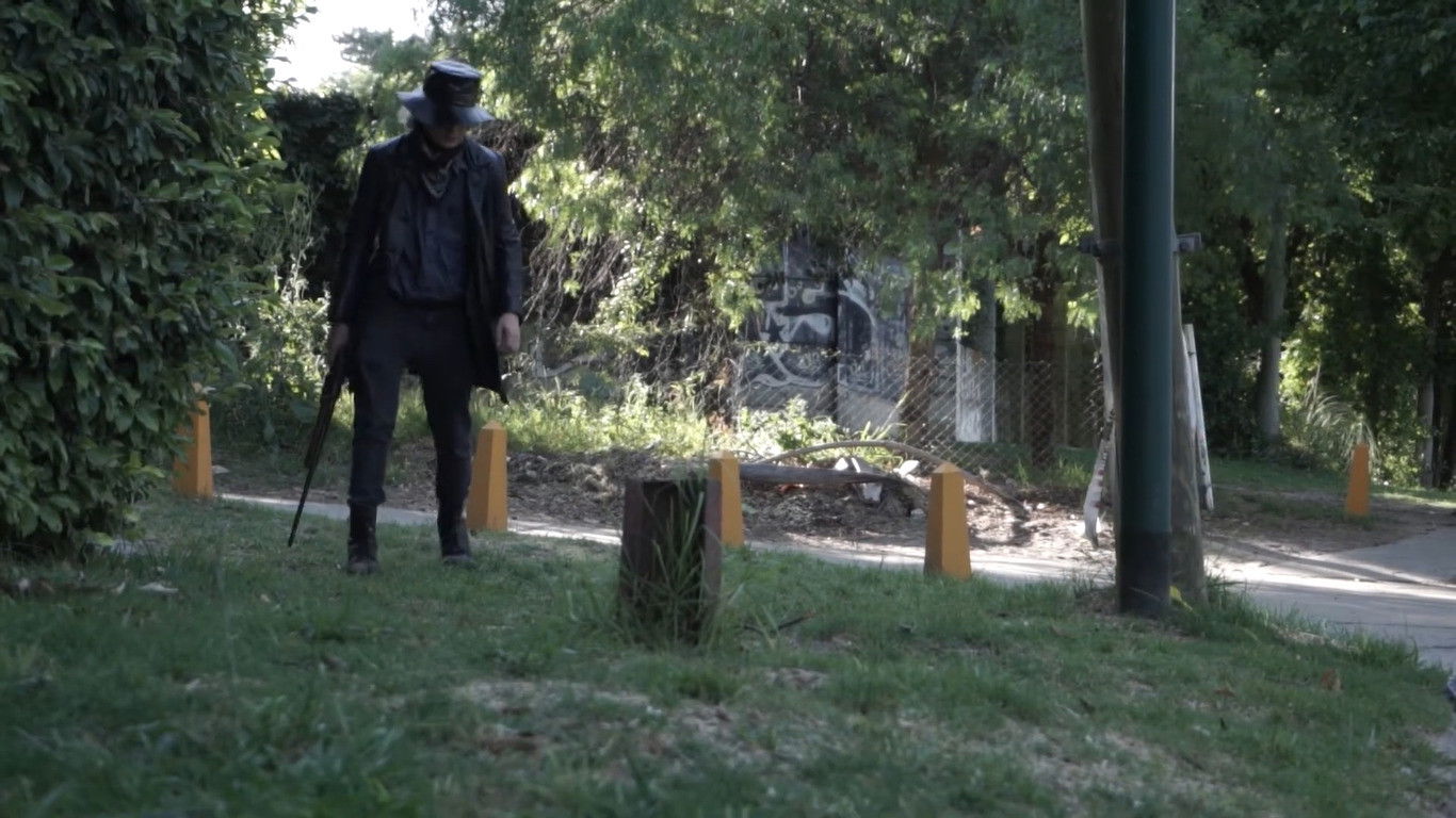 As a result of heatstroke and alcohol, the Falopa Renger embarks on an odyssey to hunt down a red-clad outlaw, or so he believes.