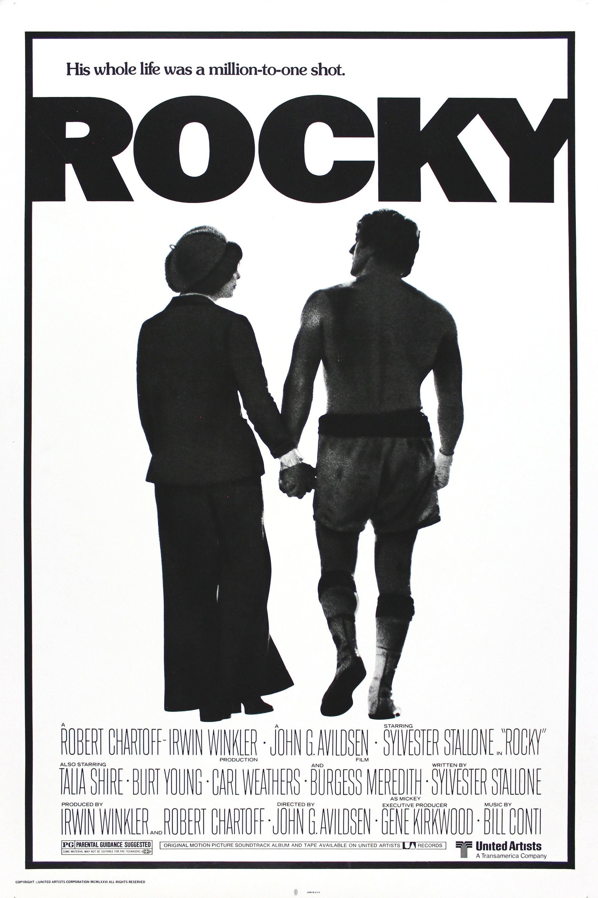 Rocky Balboa is a Philadelphia club fighter who seems to be going nowhere. But when a stroke of fate puts him in the ring with a world heavyweight champion, Rocky knows that it's his one shot at the big time — a once-in-a-lifetime opportunity to go the distance and come out a winner!