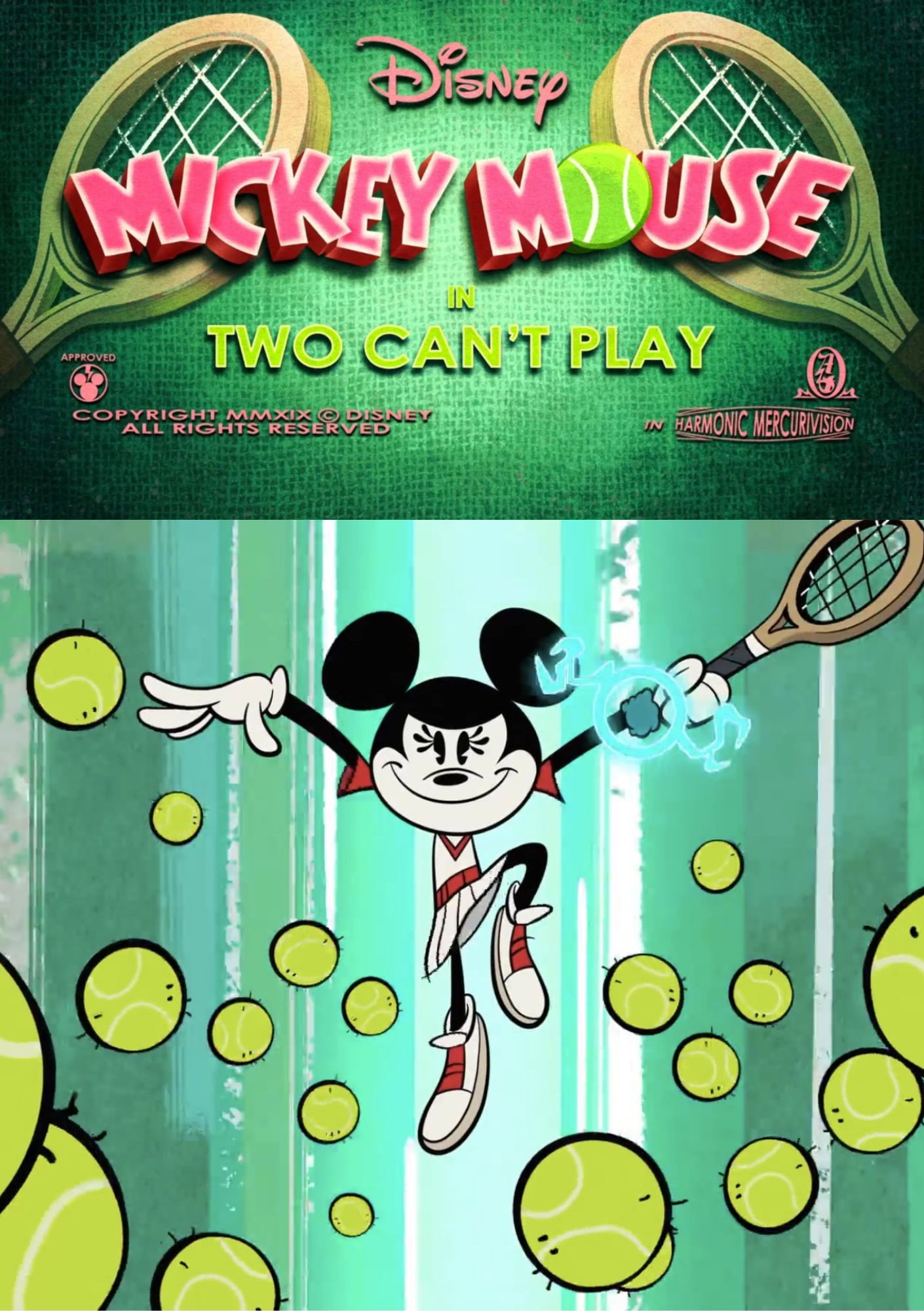 Mickey and Minnie look for an additional edge to help them beat Daisy and Donald in doubles tennis.