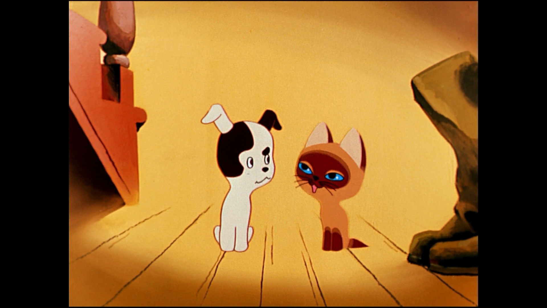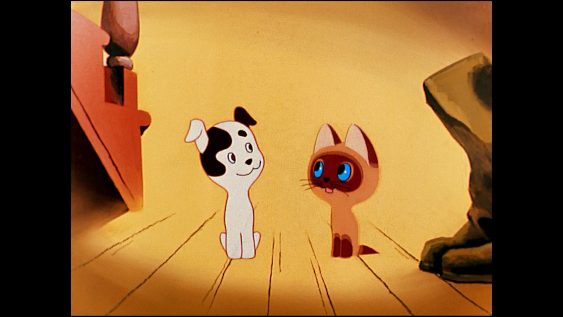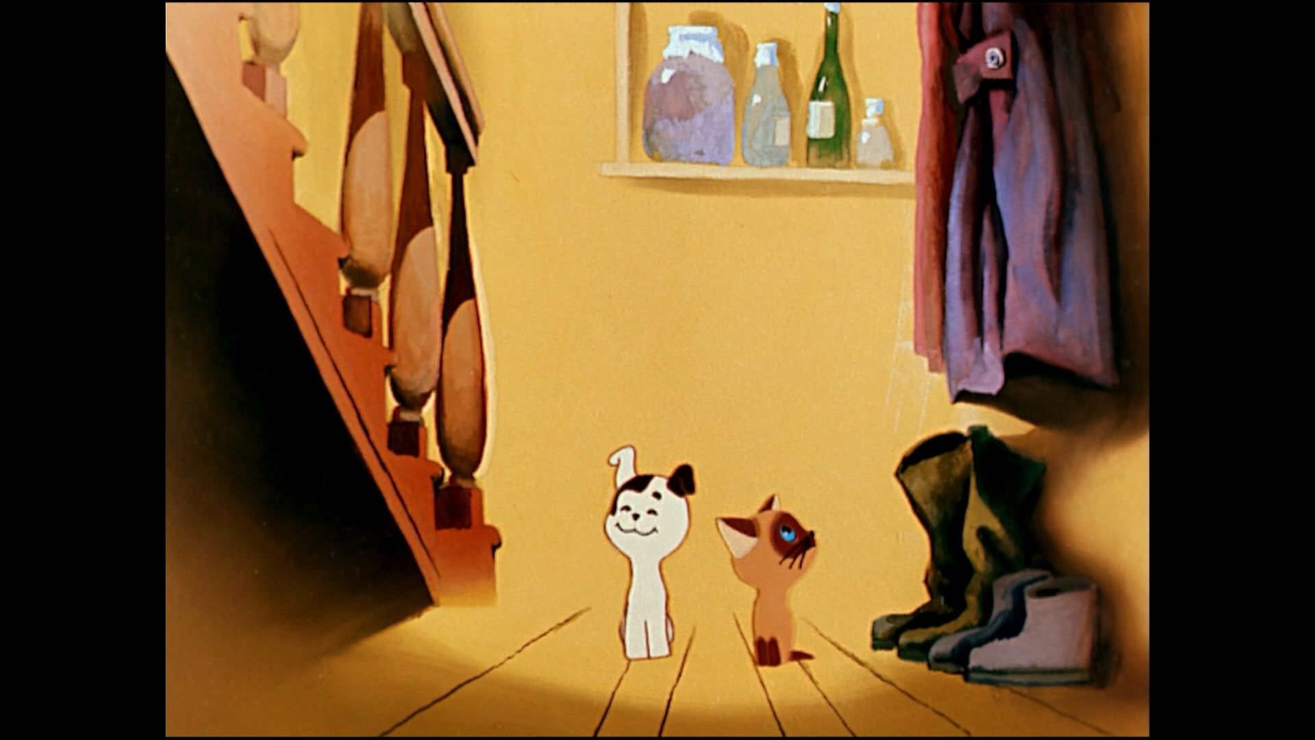 The cartoon tells about the adventures of a kitten with the unusual name of Woof and his friend - the puppy of Sharik. Woof constantly gets into ridiculous situations and finds adventures as soon as he leaves the house. He is sure that it is necessary to go to meet the trouble, because the old cat told him: "You are waiting for some troubles!". He also knows how to properly share sausages, why a secret language is needed and why one should be afraid of thunderstorms together with a friend in the attic.