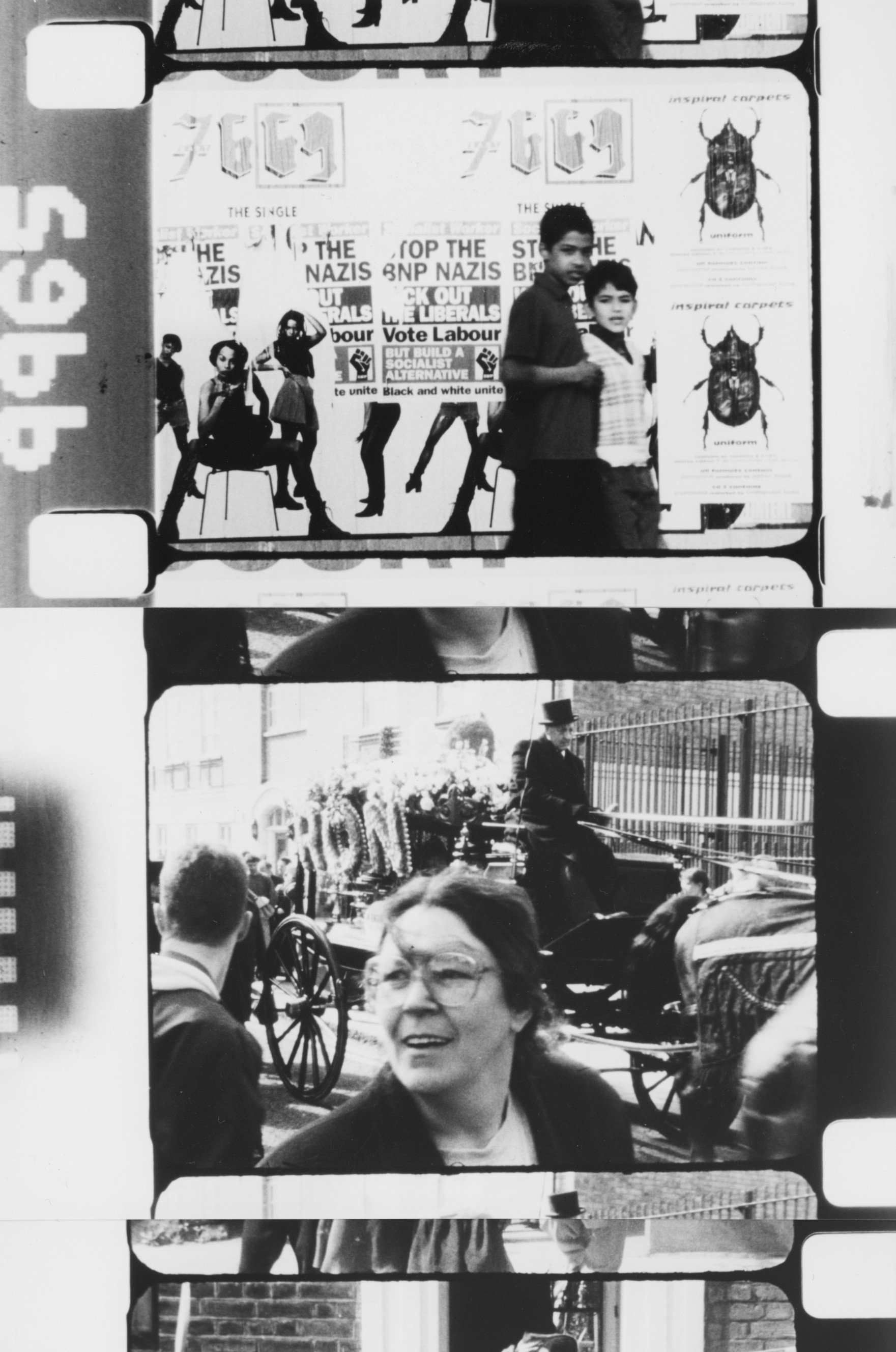 "ISLAND RACE contrasts everyday events with actions of right wing extremists, counter anti-racist demonstrations, the funeral of a gangland leader, and the jingoistic street parties celebrating Victory in Europe Day. Using only picture and sound, with no added commentary, Raban gives viewers the space to draw their own conclusions about the film’s portrayal of English national identity in the late 1990s." - Anthology Film Archives