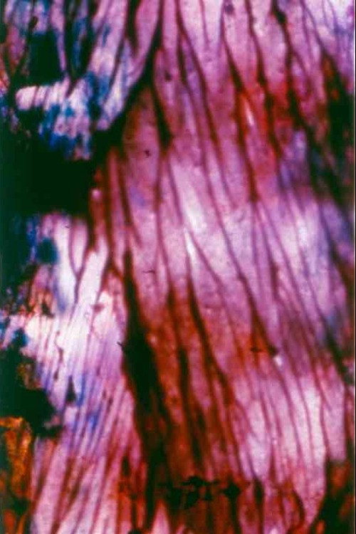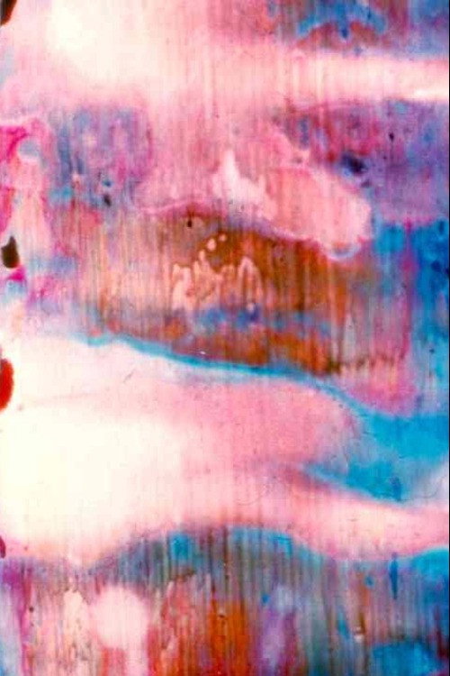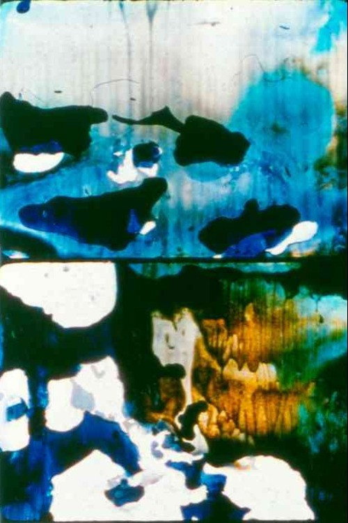 The last of Brakhage's longer works. Part of the "Vancouver Island" films. "Purple flashes are followed by a curtain of purple and blues, first seemingly static and then in motion. Close-ups of textures of paint evolve into flashes of jewel-like red, then more cascading blues and purples and white - 'falling,' seemingly, down from the top of the screen, at other times multi-directional bursts of rolling colors. Red, blue and yellow course through in an up-down motion, then blues and yellows enter from left and right in a complex medley of not solidly formed, but very vibrant pulsations of color, at times only slightly hinting at a solidity of "wallness" upon which the paint might exist. But it is a "wall" suffused with light." - Marilyn Brakhage