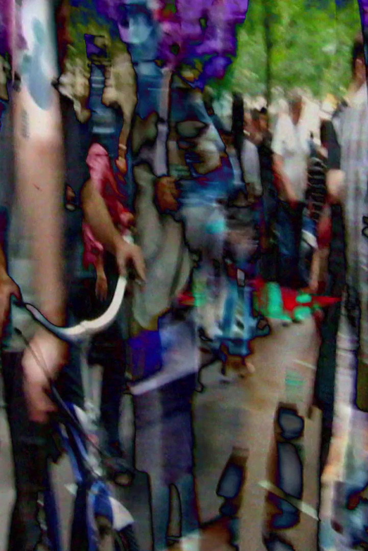 Blankets for Indians blends a stereoscopic study of water spurting from New York’s City Hall fountain with an intimately detailed portrait of an Occupy Wall Street march. While in the process of shooting the fountain in 2012, Jacobs serendipitously turned his camera toward a large protest marching to Zuccotti Park in support of Occupy Wall Street. The unexpected connection gives the film new life, seamlessly moving between sensual observation and political commentary, reflection, and abstraction. Using freeze-frames, text, and 3D manipulation, Jacobs questions the contemporary conditions of socio-political struggle, its relation to aesthetics, and the labor necessary to produce both.