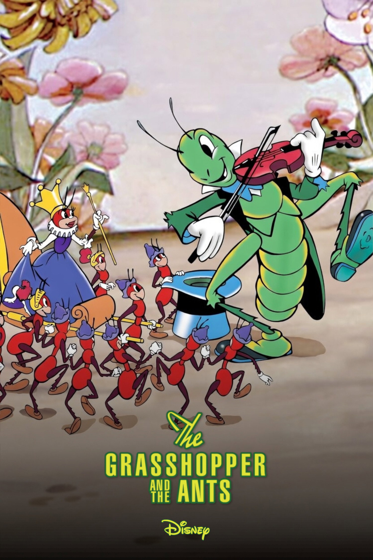 As in the classic fable, the grasshopper plays his fiddle and lives for the moment, while the industrious ants squirrel away massive amounts of food for the winter. With his song, he's able to convince at least one small ant until the queen arrives and scares him back to work. The queen warns the grasshopper of the trouble he'll be in, come winter. Winter comes, and the grasshopper, near starvation, stumbles across the ants, who are having a full-on feast in their snug little tree. They take him in and warm him up. The queen tells him only those who work can eat so he must play for them. Written by Jon Reeves