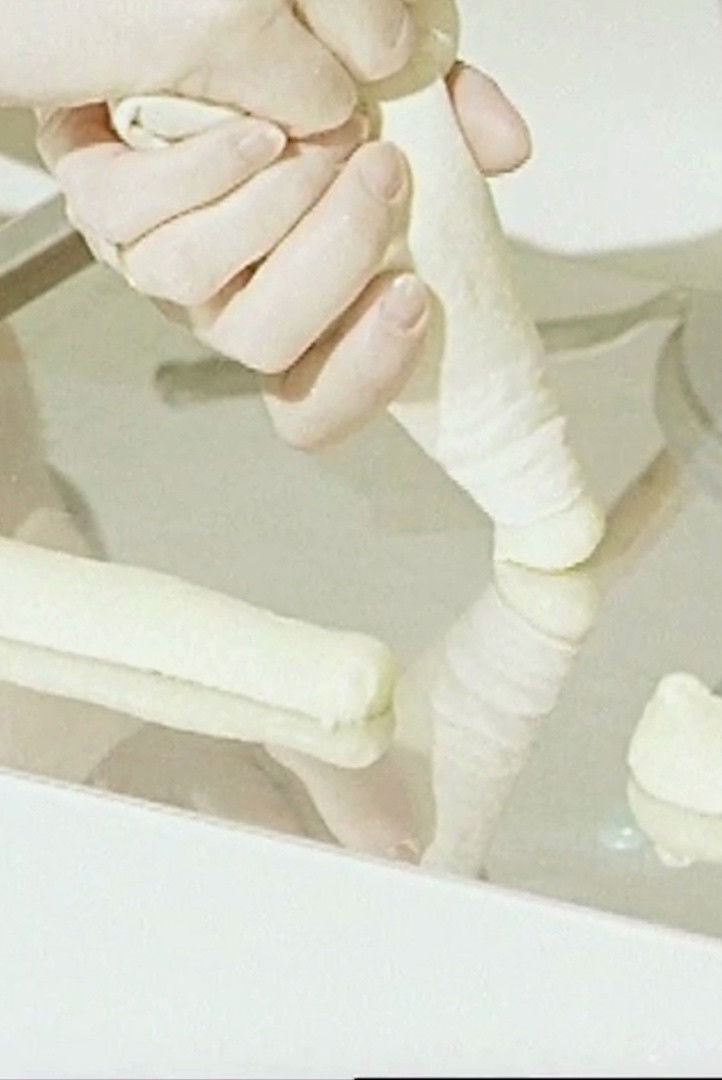 A short video about the processing of matter, using found footage, all food-related, as its material. A comparatively unobtrusive soundtrack, though one which underlines the seriousness of the subject, has been added.