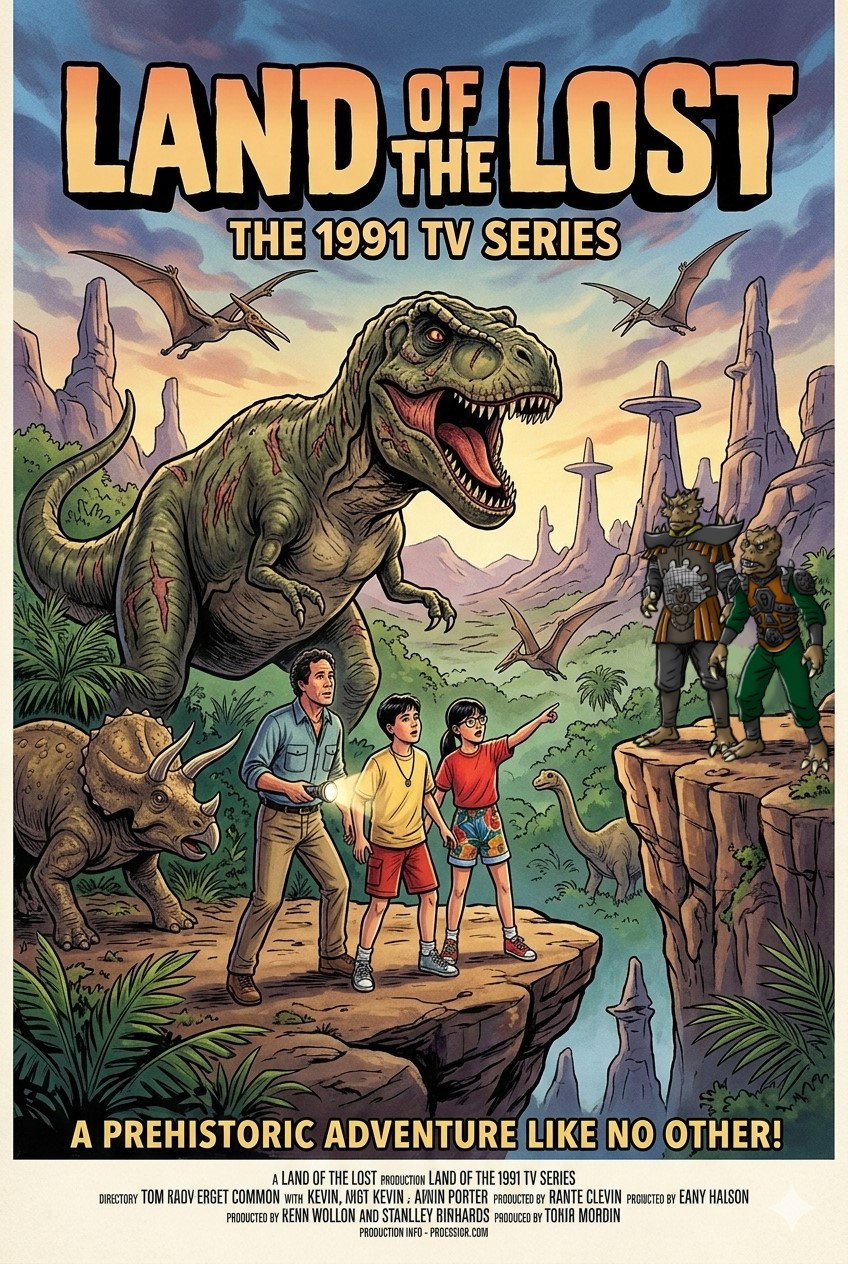 A widowed father, Tom, and his two teen children, Kevin and younger sister, Annie, find themselves trapped in a parallel universe when their jeep falls into the time portal while exploring the countryside. Together, they must learn to survive in this strange new world filled with dinosaurs, monkey-like people, and aliens.