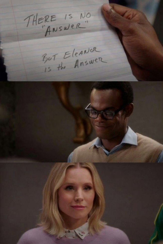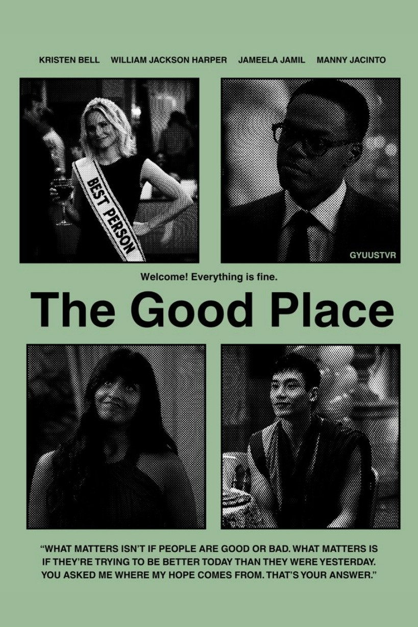The Good Place is a fantasy-comedy that was first broadcast on NBC in the Fall of 2016. Unlike most TV comedies, it is serialized, with a continuing story that flows from one episode to the next. It is filmed without a laugh track. The show has six characters. Two of them Janet and Michael (Ted Danson), operate a post-mortem world call the Good Place, and the other four, Eleanora (Kristin Be...