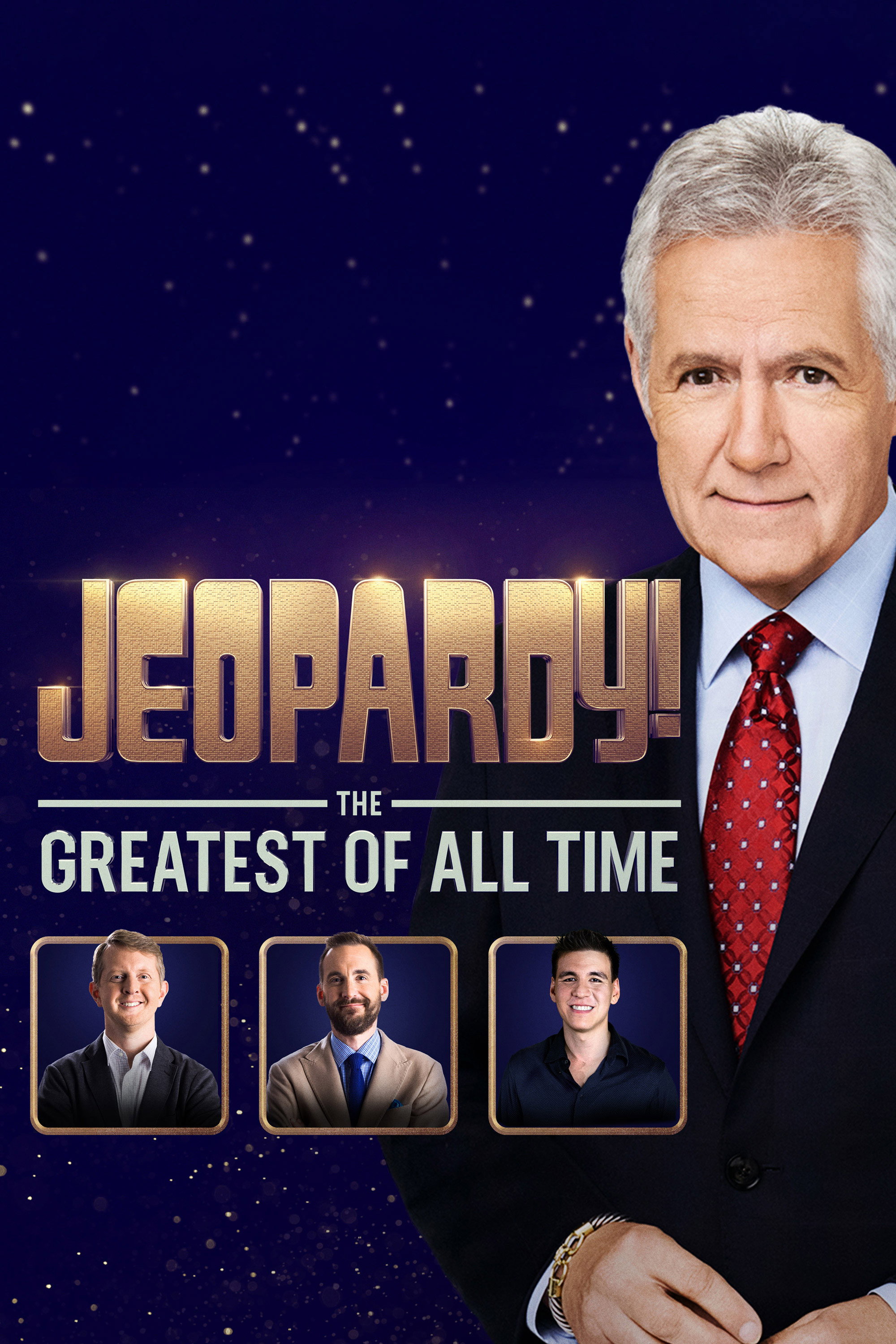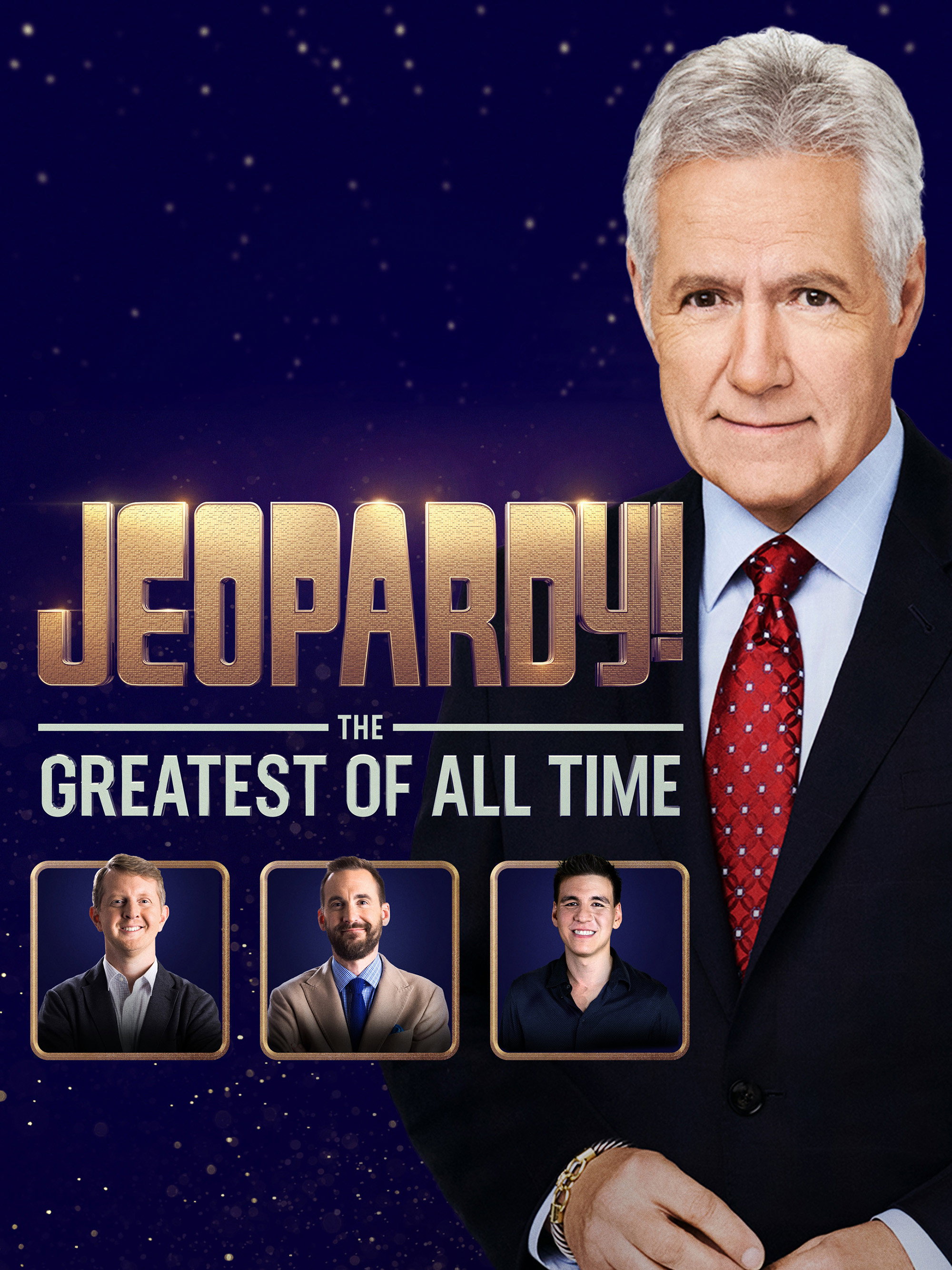 Ken Jennings, Brad Rutter, and James Holzhauer compete in a series of matches in prime time. The first to win 3 matches receives $1 million and the title of “Jeopardy! The Greatest of All Time.” The 2 non-winners each receive $250,000.